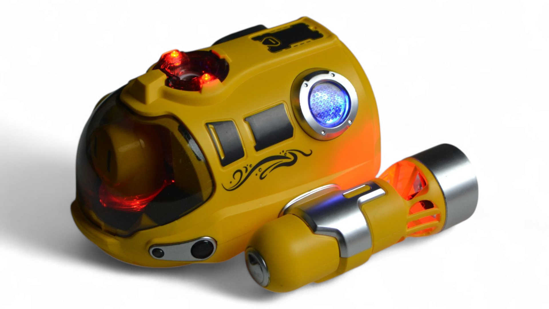 Компактные размеры: Длина 15,5 см, ширина 17 см и высота 9 см делают его маневренным и удобным в управлении. Батискаф развивает скорость до 5 км/ч, обеспечивая динамичное и захватывающее плавание.